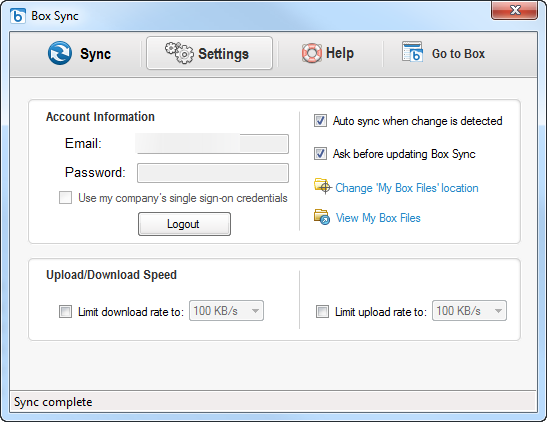 Box.com just got closer than ever to really competing head on with Dropbox for the free user. Box Sync, now available for free users, fills in a very large gap that previously prevented Box users from enjoying the full desktop to cloud experience. Box Sync provides the ability to sync your top-level only cloud-based files with a local directory structure on your PC, in a mostly similar the same manner as Dropbox. Box starts free users at 5GB vs Dropbox’s 2GB but if you are lucky enough to participate in one of Box’s numerous Android or IOS campaigns, you can grab a 50GB free account fairly easily. Dropbox rides on top of Amazon’s S3 service while Box runs its own infrastructure. There’s a lot to like about Box and now with Box Sync available, is it time to make a switch? Not until they fix their sub-folder sync issue, no. I’ve been a loyal Dropbox user for a very long time now. Even though upload speeds can be temperamental, features are some what sparse, security has been a problem, and the service can be sketchy at times, it’s still a fantastic cloud storage platform that I use daily. Just like Dropbox, Box Sync requires a local install on your PC. Once installed, you will see the Box icon in your system tray, with a familiar right-click interface list of commands. The Box solution gives you many more options including a dedicated local recycle bin, the ability to force up or downloads, enable debug logging, as well as the ability to view and save the logs! Speaking as a professional technologist this is fantastic and much more in line with a true enterprise platform!